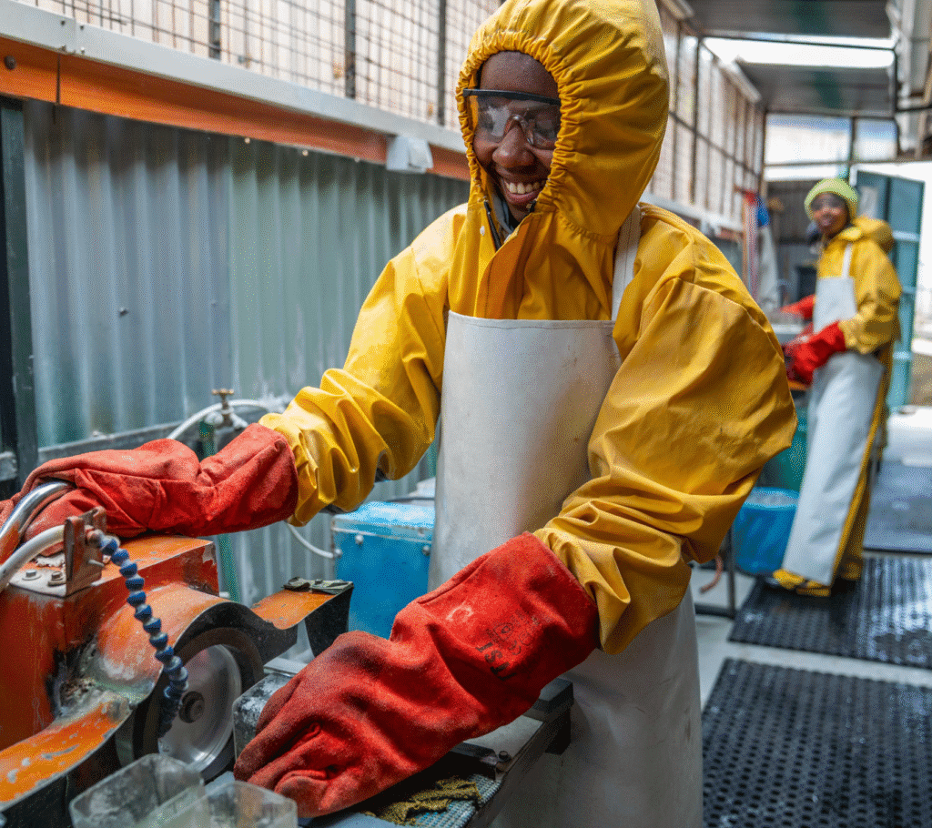 All employees are women from the immediate community who walk to work. With over 50% being youth